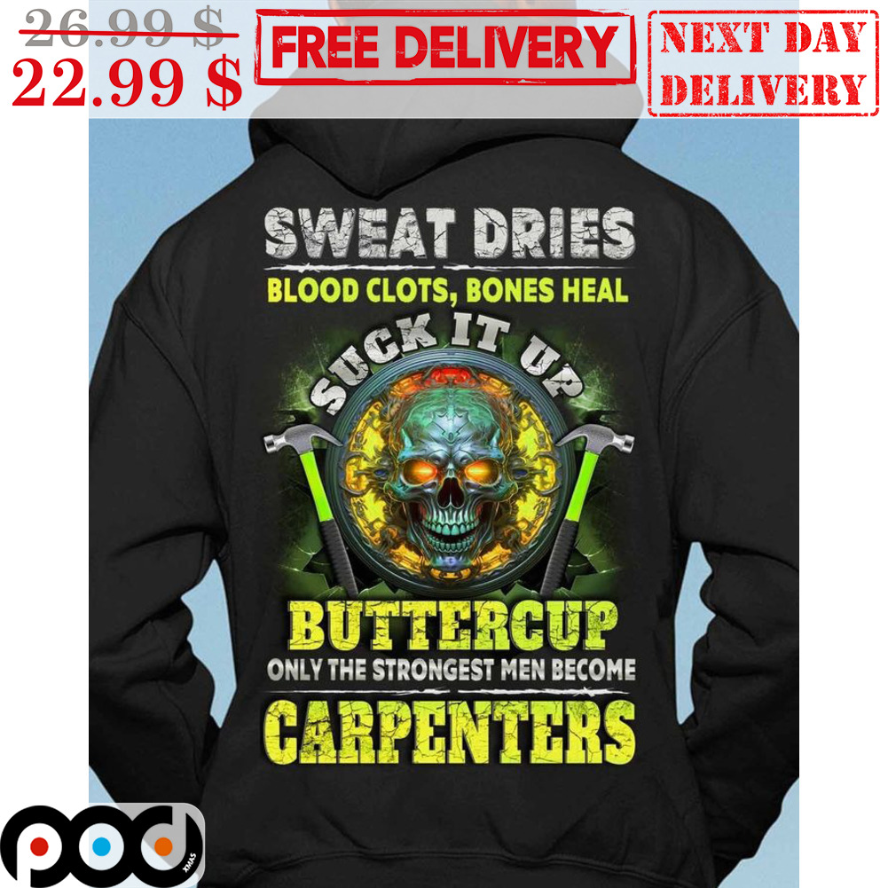 Skull Sweat Dries Blood Clots Bones Heal Suck It Up Buttercup Only The Strongest Men Become Carpenters Vintage Shirt