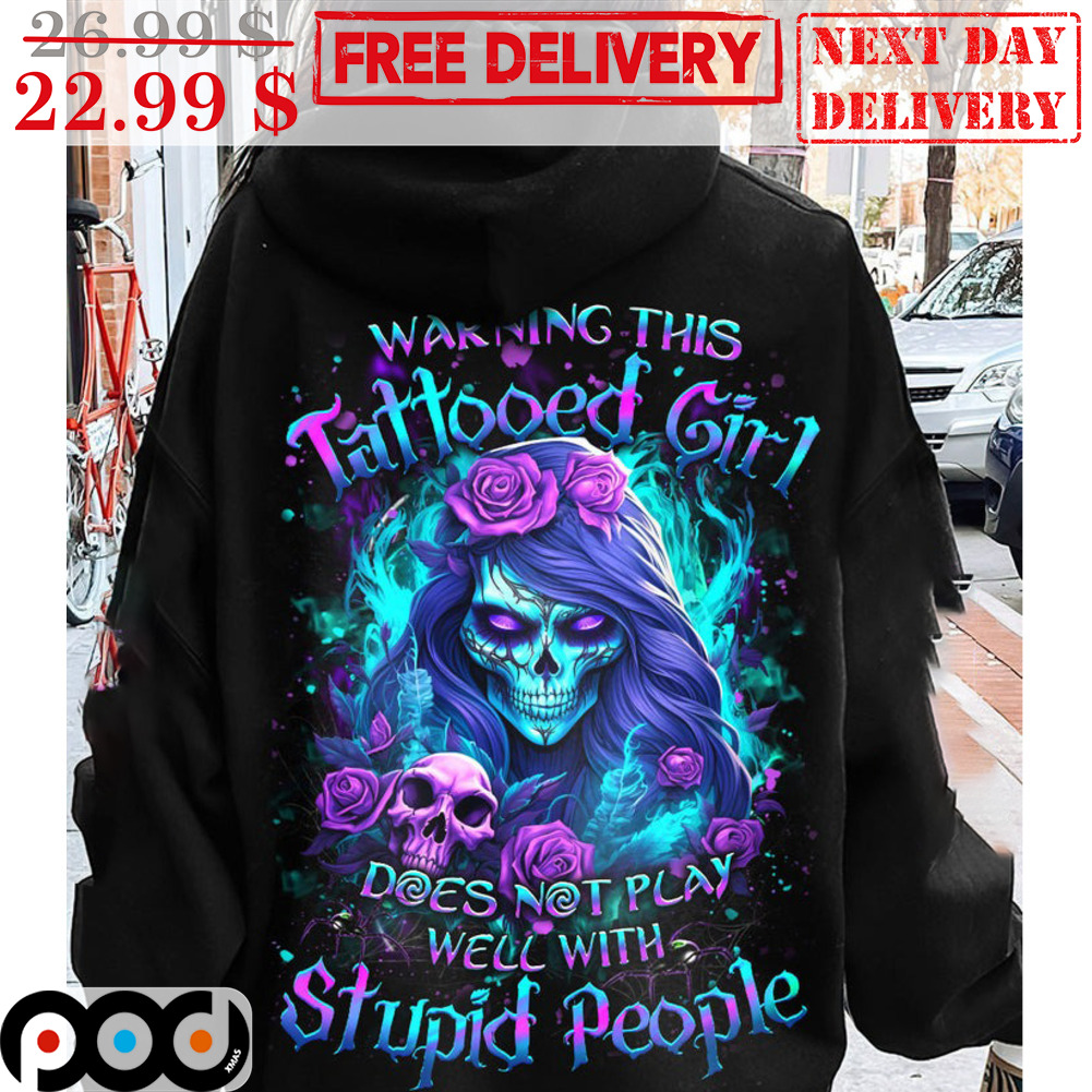 Skull Warning This Tattooed Girl Does Not Play Well With Stupid People Shirt