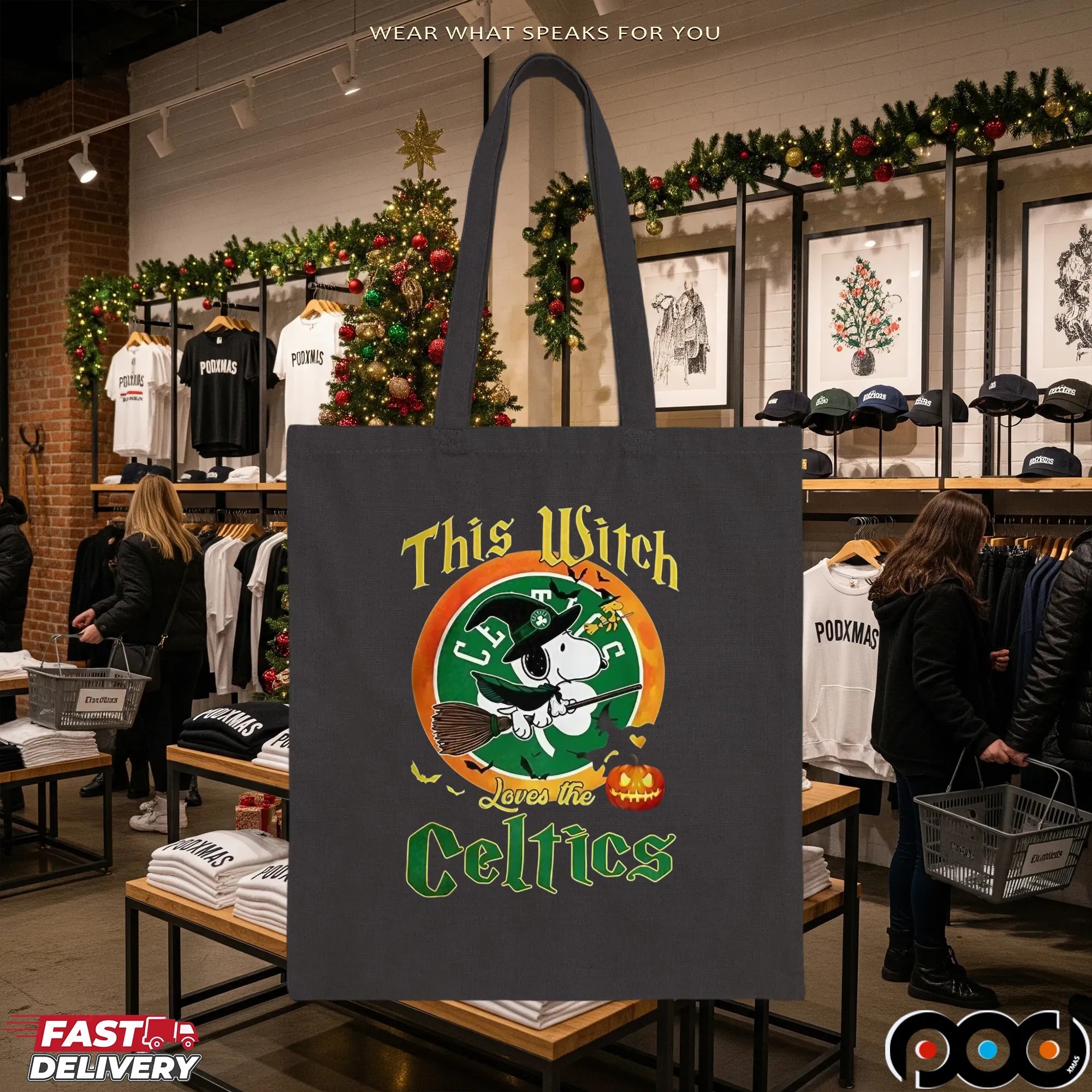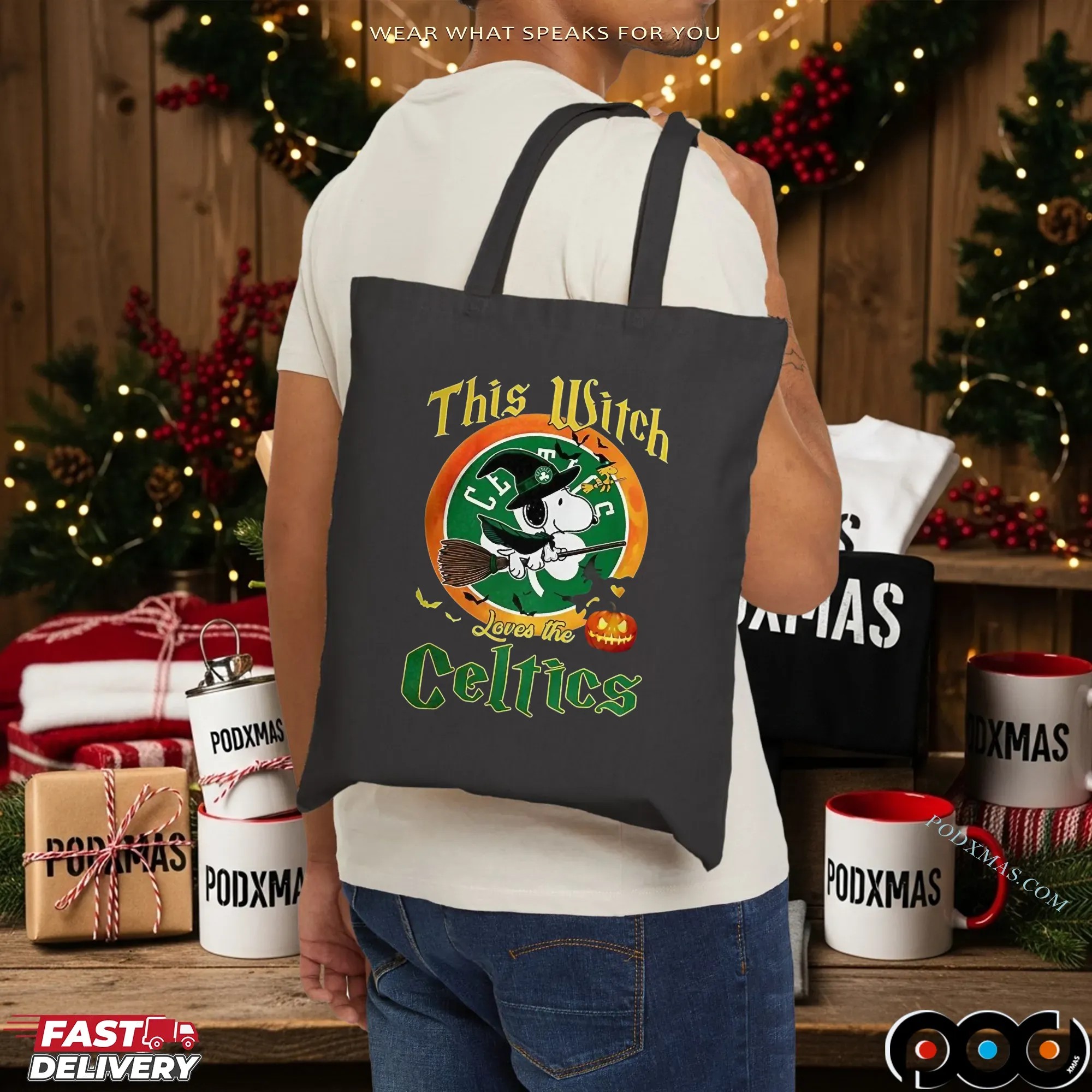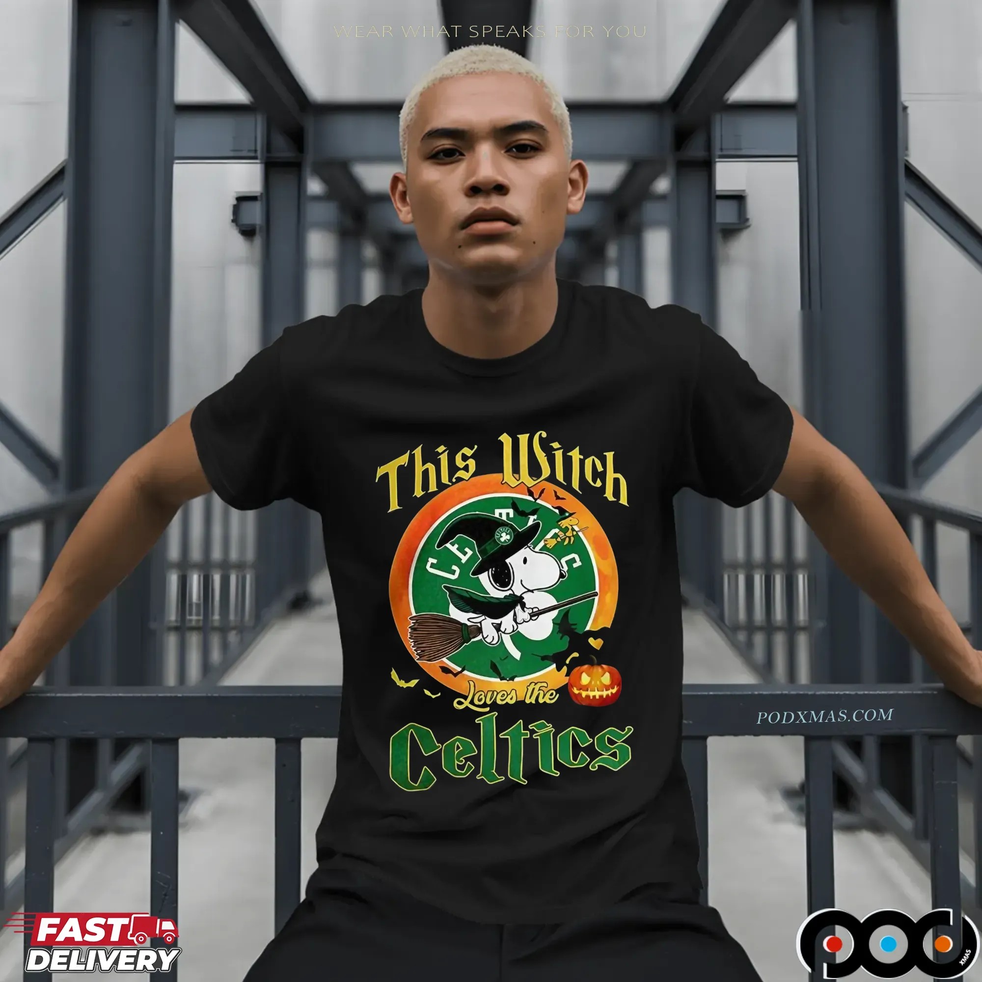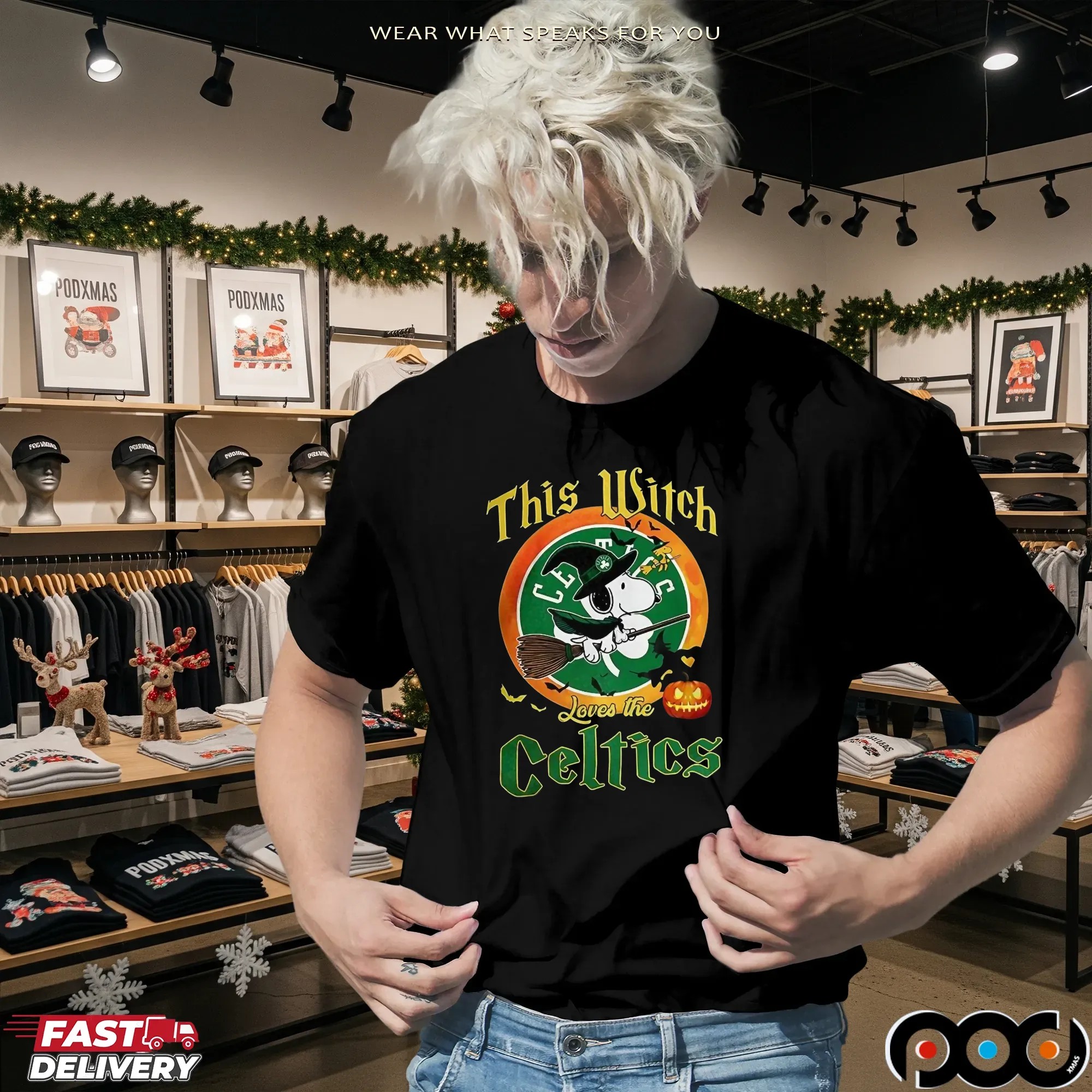 Snoopy This Witch Loves The Boston Celtics Halloween T Shirt , hoodie, sweater, cropped tee, long sleeve, v-neck, youth tee, mug