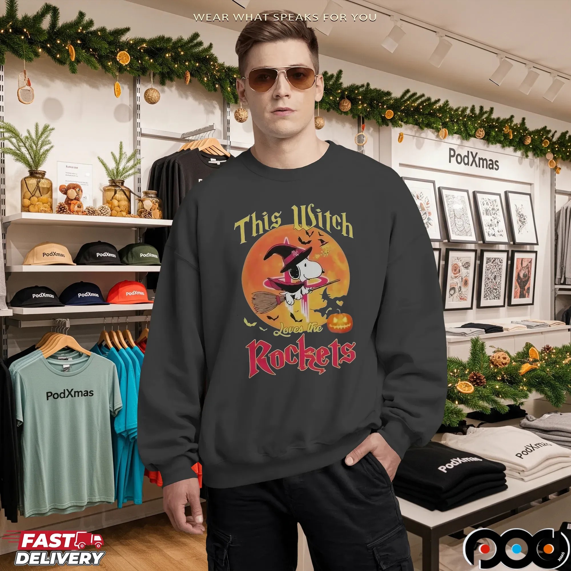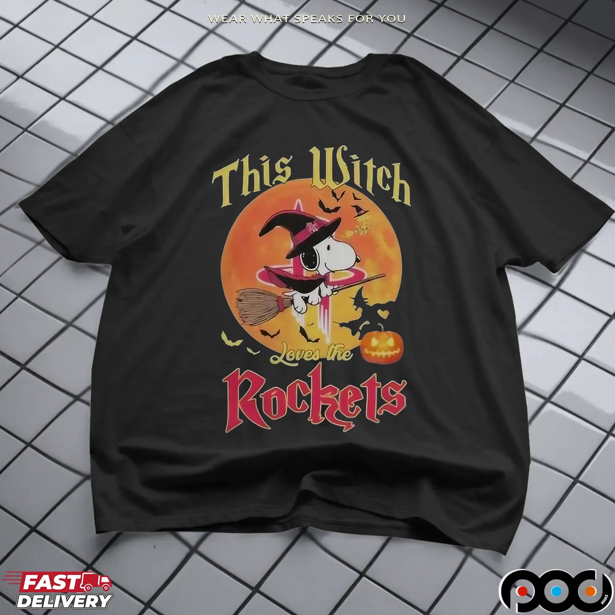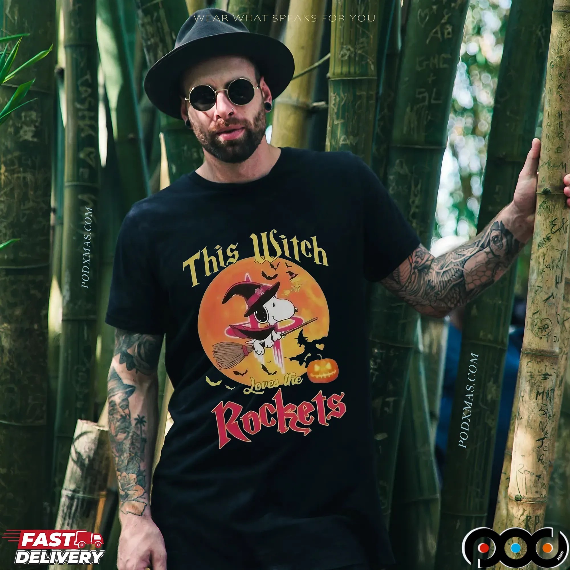 Snoopy This Witch Loves The Houston Rockets Halloween T Shirt , hoodie, sweater, cropped tee, long sleeve, v-neck, youth tee, mug