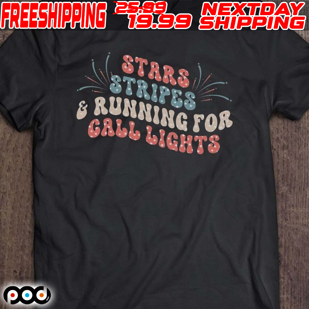 Stars And Stripes Running For Call Lights 4th Of July Nurse Shirt