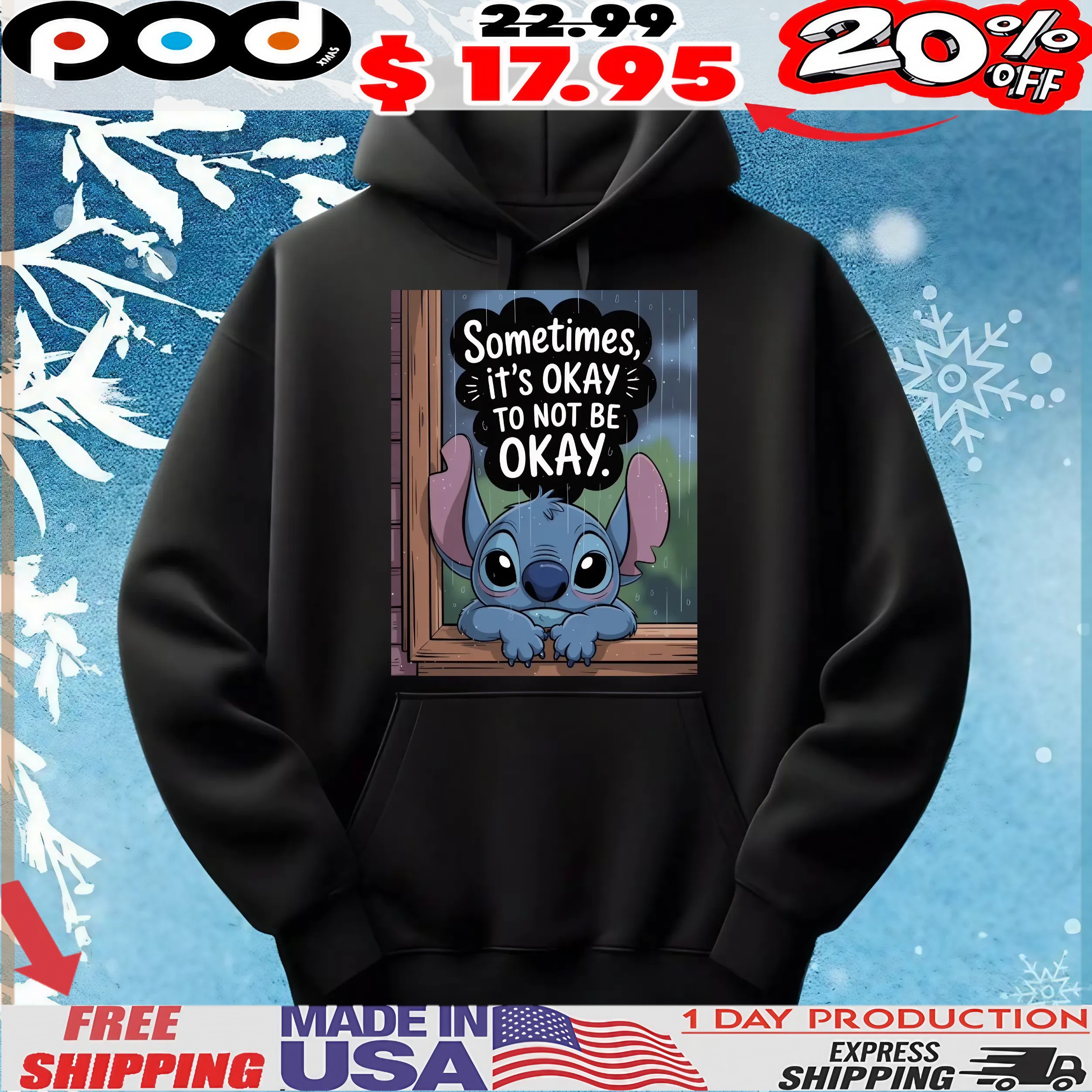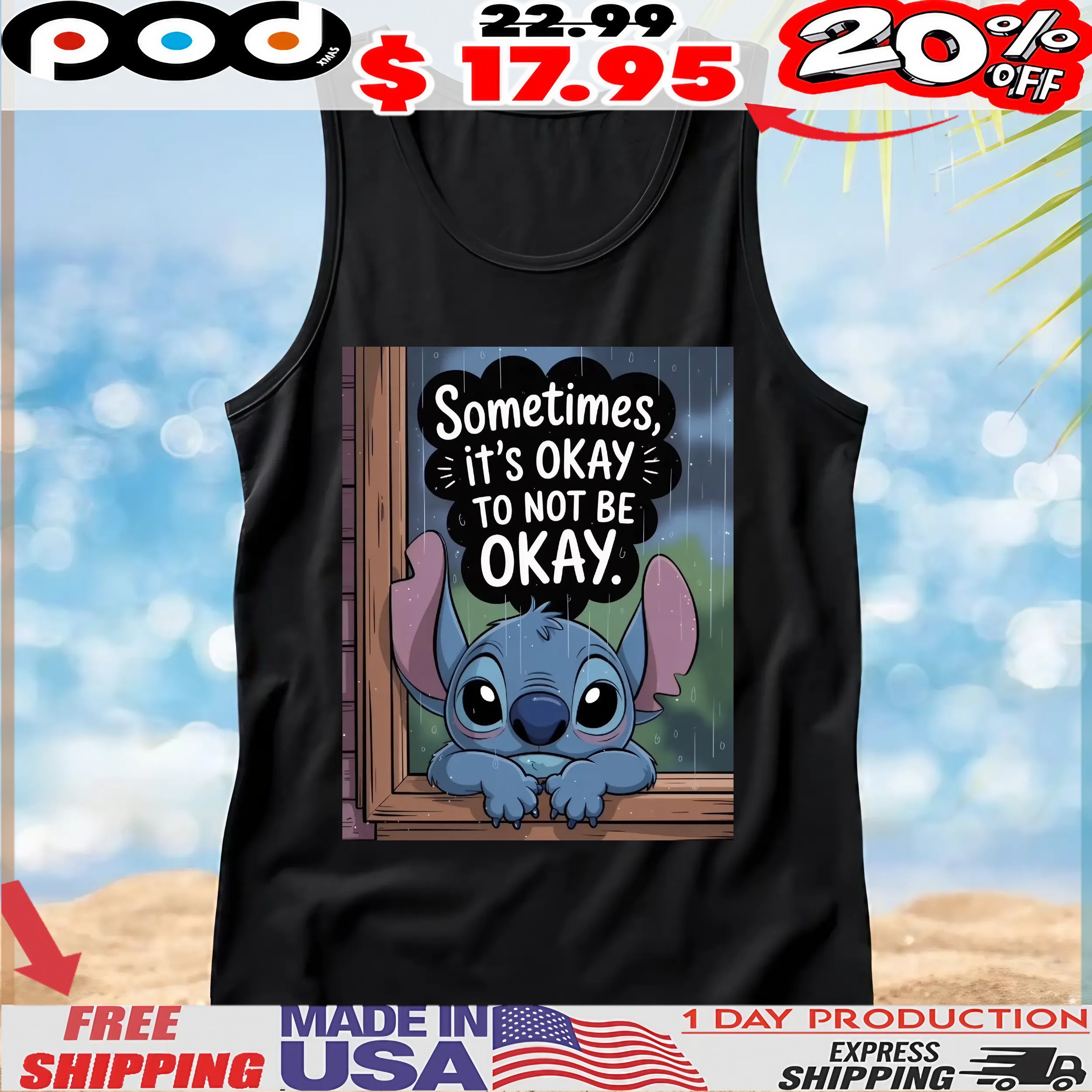 In conclusion, the Stitch Sometimes, It’s Okay To Not Be Okay T Shirt is more than just an article of clothing; it’s a powerful statement of self-acceptance and connection. Whether you’re treating yourself or searching for a thoughtful gift, this T-shirt is an excellent choice. Embrace the message and express your individuality by ordering yours today from podxmas.com!
