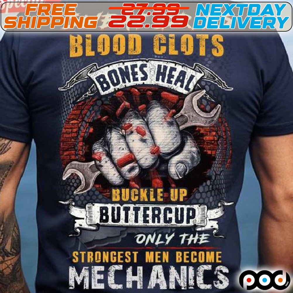 Sweat Dries Blood Clots Bones Heal Buckle Up Buttercup Only The Strongest Men Become Mechanics Shirt
