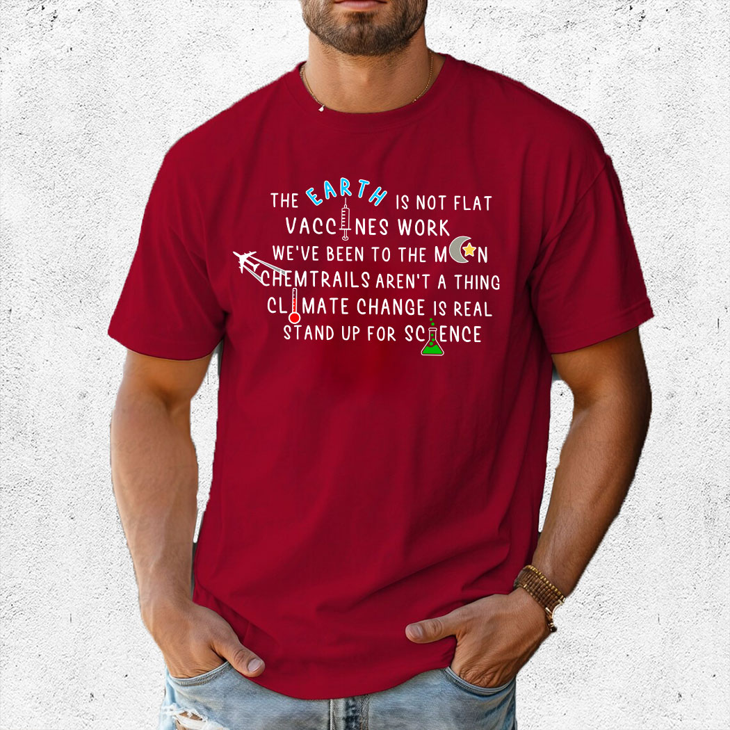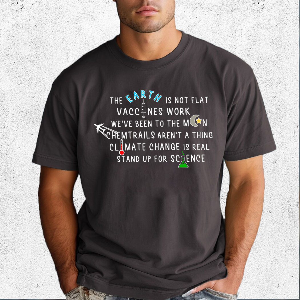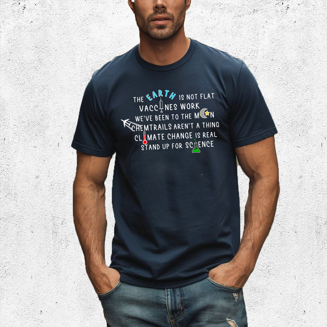The Earth Is Not Flat Vaccines Work We’ve Been To The Moon Chemtrails Aren’t A Thing Climate Change Is Real Stand Up For Science Shirt