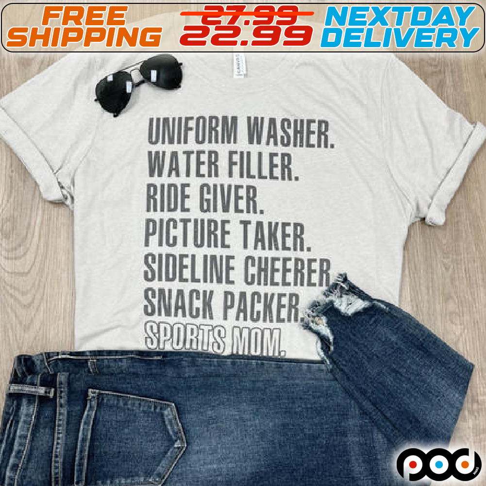 Uniform Washer Water Filler Ride Giver Picture Taker Sideline Cheerer Snack Packer Sports Mom Shirt