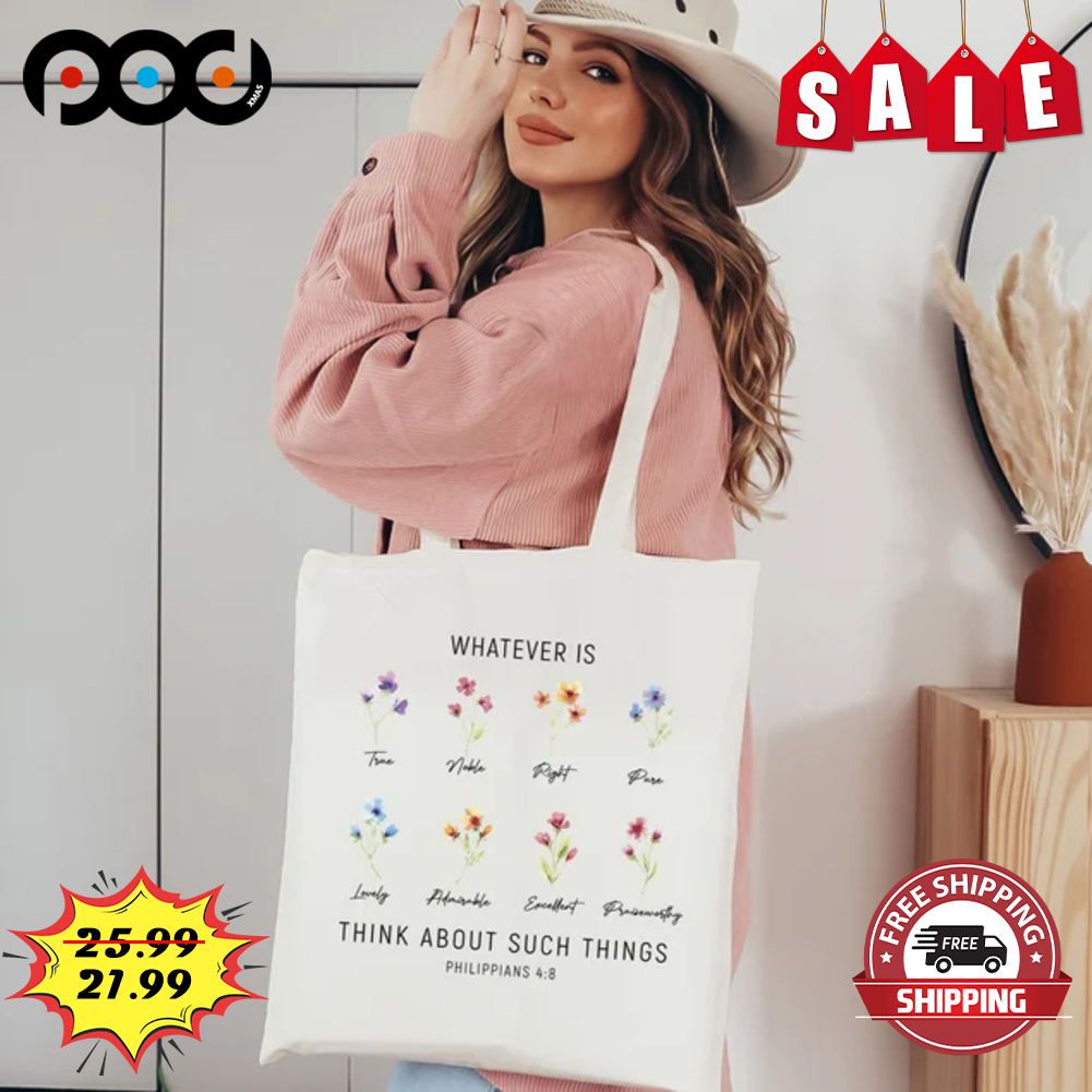 Whatever Is Think About Such Things Philippians 4 8 Flower Vintage Tote Bag