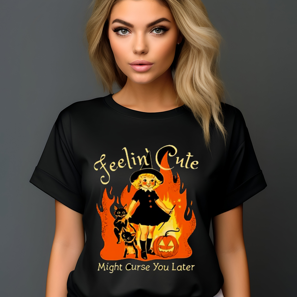 Witch Feeling Cute Might Curse Your Later Halloween 2024 Shirt
